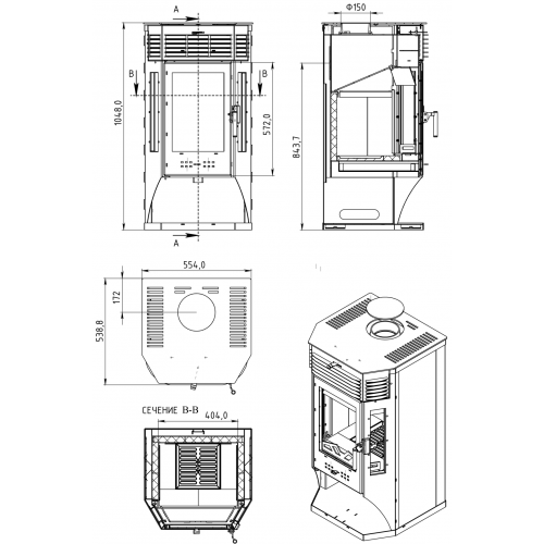 Габаритные размеры печи (ШхВхГ), мм | 554х1048х540 |