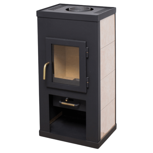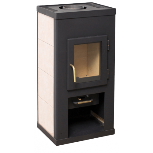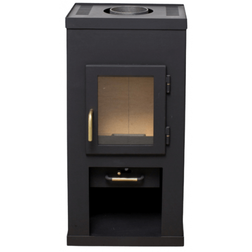 Компактная пристенная печь. Идеально подходит для обогрева небольшого помещения площадью 30-60 м2. Плоская дверка высотой 330 мм. Размер поленьев 25 – 27 см. Подсоединение к дымоходу сверху.