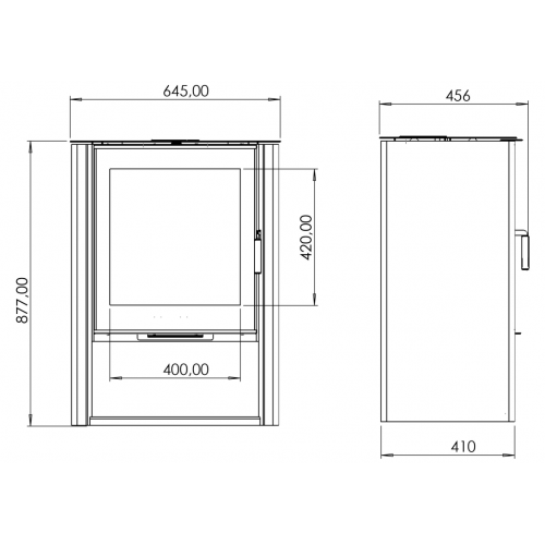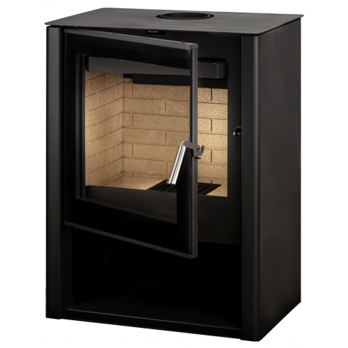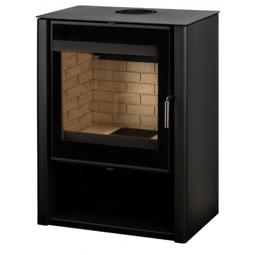 Пристенная печь с оригинальным и лаконичным дизайном. В дверке установлено термостойкое стекло, изготовленное в Японии на предприятии Neokeram с принтингом по периметру. Ниша под топкой может служить удобным дровником. Идеально подходит для обогрева помещения, выполненного в современной стилистике площадью 25-70 м2. Размер поленьев 30 – 40 см.