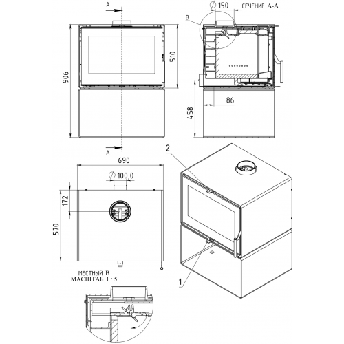 Габаритные размеры печи (ШхВхГ), мм | 690х906х570 |