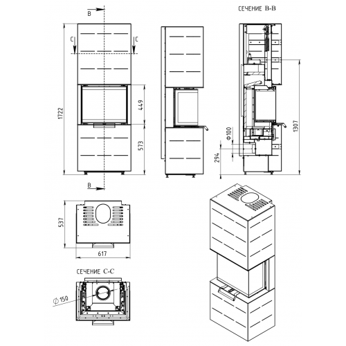 - Диаметр дымохода, мм 150