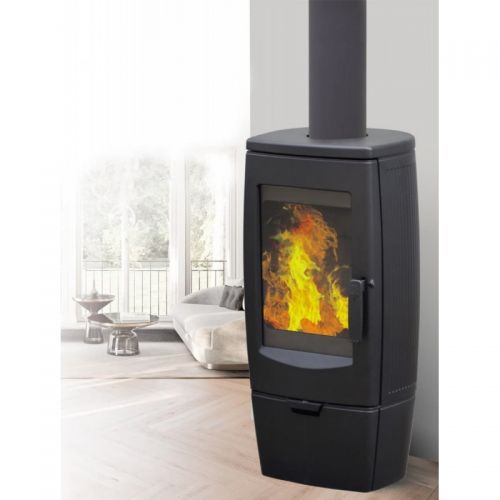 Вертикальная конструкция и верхнее подключение дымохода позволяют располагать печь в помещении не только с удобством, но и с большой экономией для полезного жилого пространства. Спектакль огня в отопительной печи TARA отличается особенной красотой, так как вытянутая форма печи и, соответственно, топочной камеры, предоставляет много места для пламени, которому есть где разгуляться. Плоское огнеупорное стекло топки не коптится и не загрязняется за счет отличной работы системы «чистое стекло». На дверце печи есть удобная ручка. Внизу печь укомплектована небольшой , но функциональной закрытой дровницей.