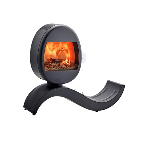 Печь-камин Scan 66-5 S, модель установлена на пьедестале-волне, мощностью 5 кВт, рассчитана на обогрев помещений площадью до 100 м 2.