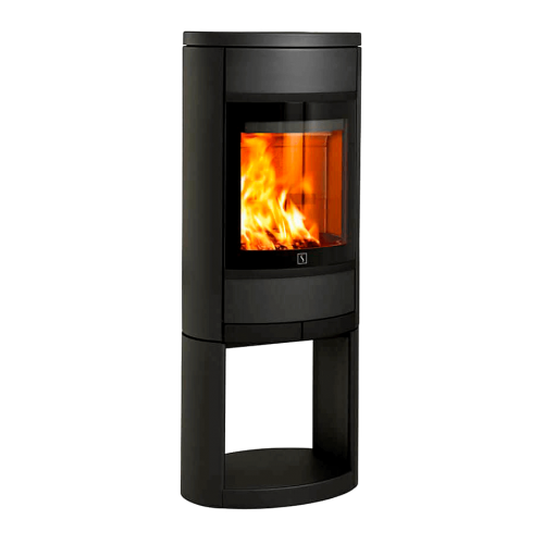 Печи камин Scan серии 68-5 имеют полукруглую форму с большим обзорным стеклом, выполнены в современном дизайне. Устанавливаются на ноге – пьедестале, имеет вставки и ручку черного цвета.