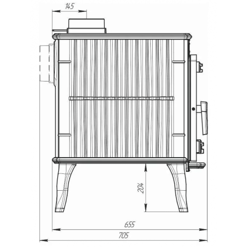 Отопительная печь «Маэстро» отлично подходит для загородных домов и дач. Конструкция имеет классический дизайн, занимает минимум места и может подключаться к дымоходу через верх или заднюю панель.