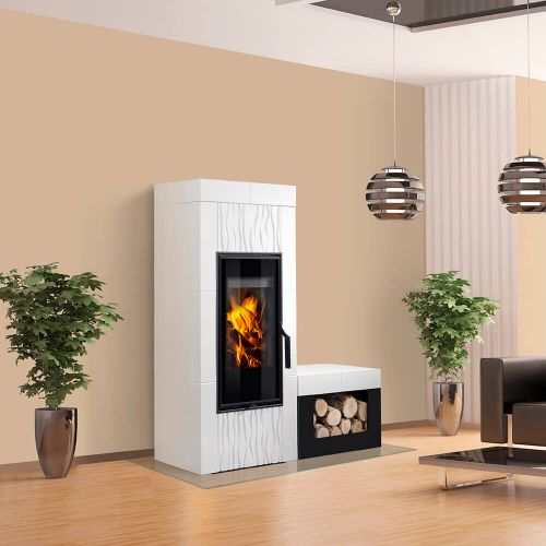 Определяющим элементом печи является массивная, широкопрофильная, керамическая облицовка корпуса, с элегантными 3-D элементами на передних плитках. Доминирующая застекленная дверь повышает визуальный контакт с пылающим огнем. Для увеличения комфорта восприятия печного тепла к печи можно приставить с разных сторон элегантные керамические скамейки, которые в свое время послужат Вам дровниками. Большие керамические блоки, которые используются в облицовке данной модели также несут функцию теплонакопительных модулей (аккумуляция), которые позволяют излучать тепло в течении нескольких часов после того как огонь погаснет. Данная модель отлично подходит для отопления любого помещения, объем которого не превышает 220 куб. м