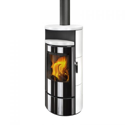 ASKJA H SE — возможность установки аккумуляции + комбинация стеклянной дверцы и матовый металл лицевой части сверху и снизу печи