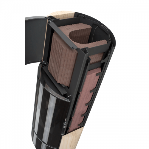 ASKJA H SE — возможность установки аккумуляции + комбинация стеклянной дверцы и матовый металл лицевой части сверху и снизу печи