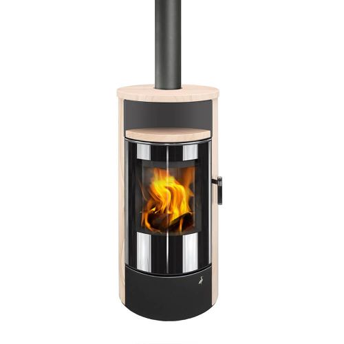 ASKJA H SE — возможность установки аккумуляции + комбинация стеклянной дверцы и матовый металл лицевой части сверху и снизу печи