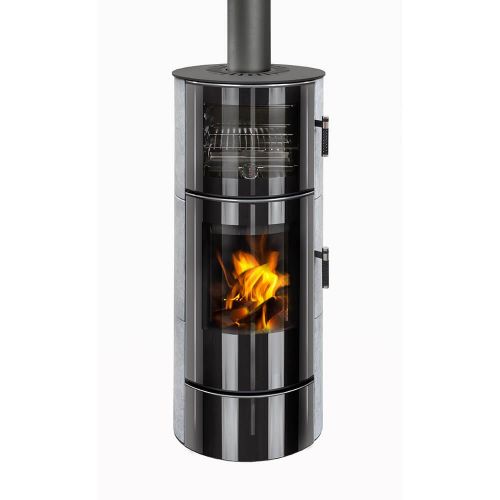 ASKJA H SE — возможность установки аккумуляции + комбинация стеклянной дверцы и матовый металл лицевой части сверху и снизу печи