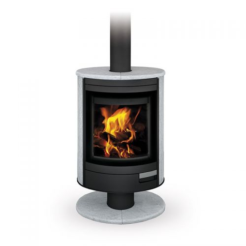 Дизайн камина подчеркивает элегантная овальная форма и большое тонированное по краям стекло. Поворотный печь камин STROMBOLI NEW, отлично подходит для отопления загородного дома или коттеджа.