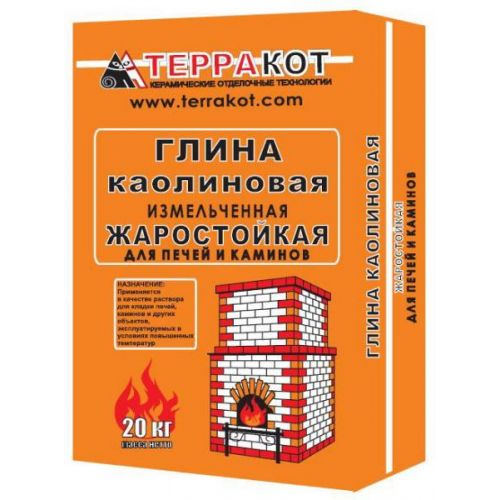 Глина каолиновая жаростойкая «Терракот» — применяется в качестве жаростойкого вяжущего компонента в составе кладочных и обмуровочных смесей для кладки печей, каминов, мангалов, барбекю, дымоходов и обмуровки нагреваемых объектов, а также в качестве компонента массы для лепки в прикладном творчестве.