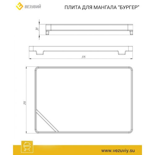 - Модель: Плита чугунная для мангала "БУРГЕР" (255х375х20мм)