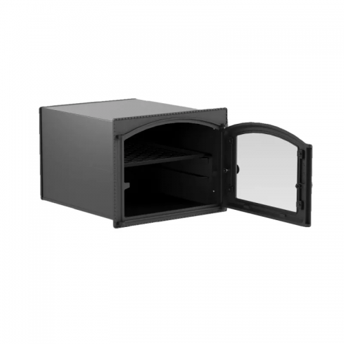Комплектация | Дверка каминная герметичная ДКГ- 2А, со стеклом ROBAX и встроенным термометром, стальной корпус духовки из двух боковых стенок, нижней и верхней стенки, решетка |