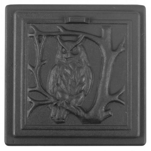 Прочистная дверца закрывает отверстия в кладке печи, ведущие к дымовым каналам (прочистные отверстия). Крышка дверки ДПр-8 украшена барельефным рисунком "Сова" Крышка снимается полностью, что очень удобно во время чистки колодцев печи.
