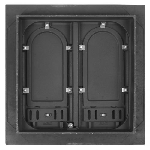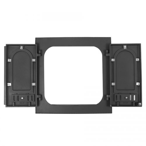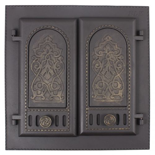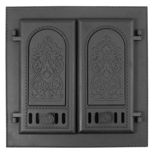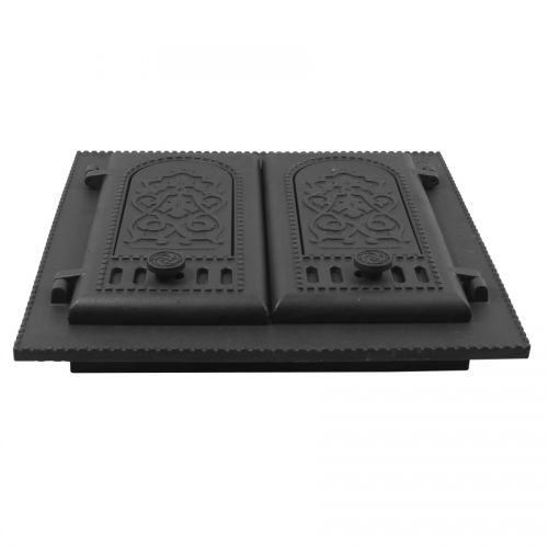 Вставка с барельефным рисунком – является как украшением дверки, так и рёбрами жёсткости, предотвращающими коробление дверки под воздействием высоких температур.