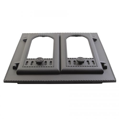 Двустворчатая каминная дверца «Горница» напоминает окошко в старинную избу – две створки, резной узор. И как окна со ставнями защищали жилище, так и каминная дверца будет защищать дом от огня из топки. Да ещё и украсит печь, сделает её эксплуатацию удобнее и безопаснее.