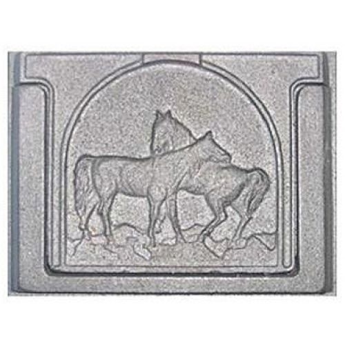 Прочистная дверца, материал чугун, соединение рамки и крышки – уплотнённое. Крышка дверцы украшена изображением лошадей. Такая дверца – украсит печь, особенно понравится любителю животных.