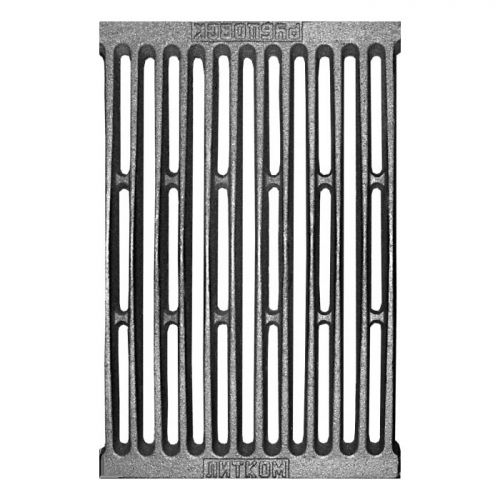 Колосниковая решётка для дров из чугуна. Название колосник пошло из за формы рёбер изделия, они идут на сужение, как колосья. Важно устанавливать колосник узкой стороной вниз, так изделие дольше служит. Посадочный размер колосниковой решётки РД-6 380 на 250 мм.