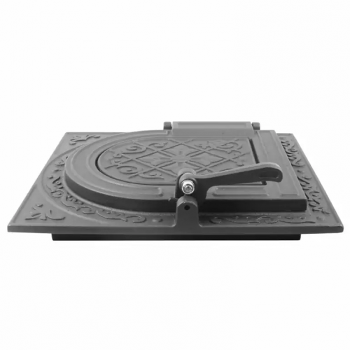 Чугунная вставка на крышке. Украшает дверцу, работает рёбрами жёсткости, которые предотвращают коробление дверцы.